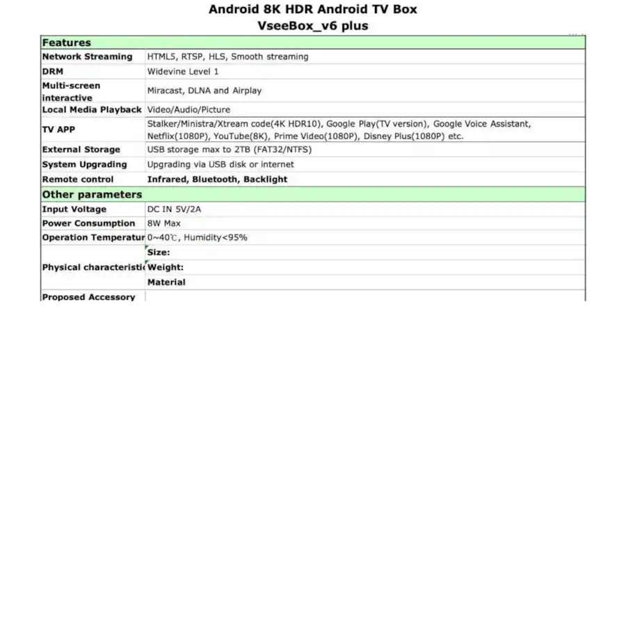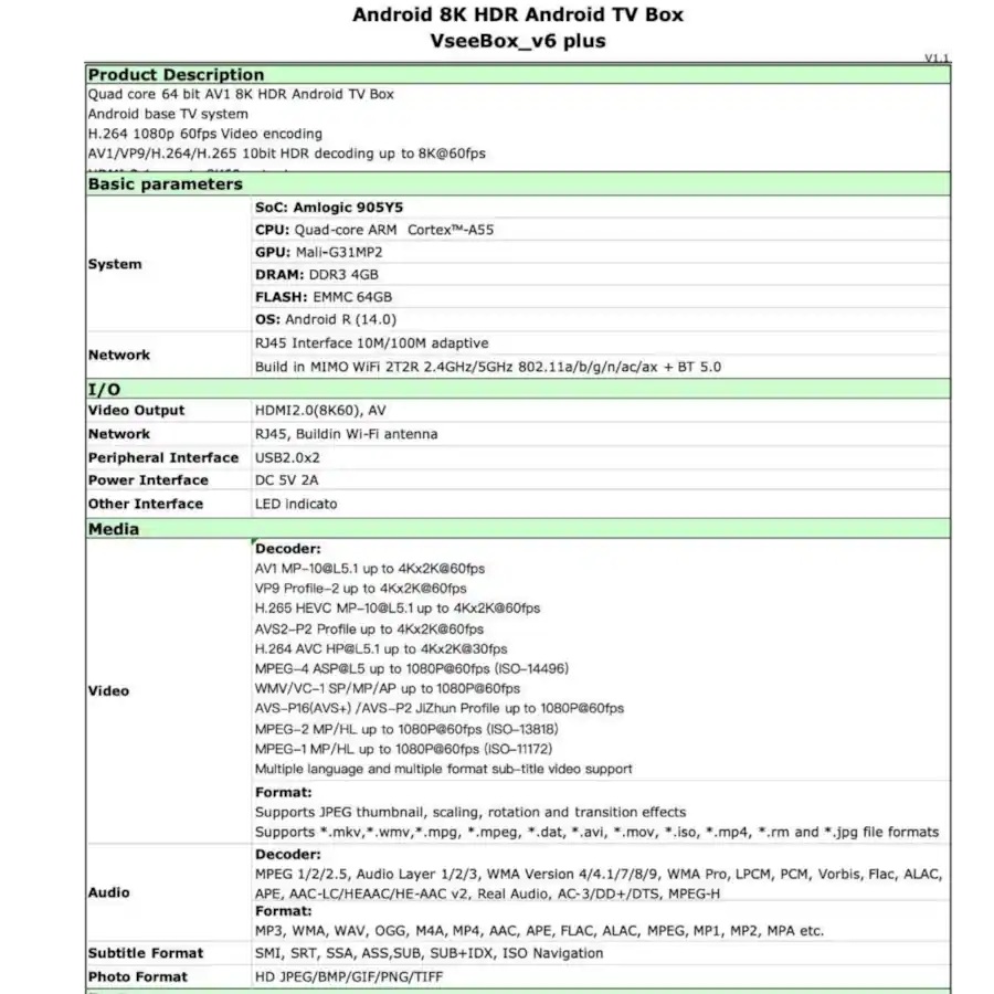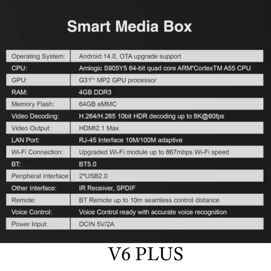 + Free ShippingExperience next-level streaming with the vSeeBox V6 Plus. Running on Android 14.0 and powered by the potent Amlogic S905Y5 quad-core chipset, this box offers lightning-fast performance, extensive app support, and seamless multitasking with 4 GB RAM and 64 GB internal storage. Enjoy cinematic visuals with 10-bit HDR decoding up to 8K@60fps, plus full support for modern codecs (AV1, VP9, H.264, H.265). Connectivity is comprehensive — dual-band Wi-Fi, Ethernet, Bluetooth 5.0, HDMI 2.1 and USB ports ensure compatibility with a variety of TVs, projectors, and accessories. A backlit Bluetooth remote makes night-time control effortless, while split-screen support enables multitasking like streaming and browsing at once. The vSeeBox V6 Plus is ideal for anyone upgrading their home entertainment — whether for movies, live TV, gaming, or streaming apps. Comes complete with HDMI cable, power supply, and a 1-year warranty for peace of mind.